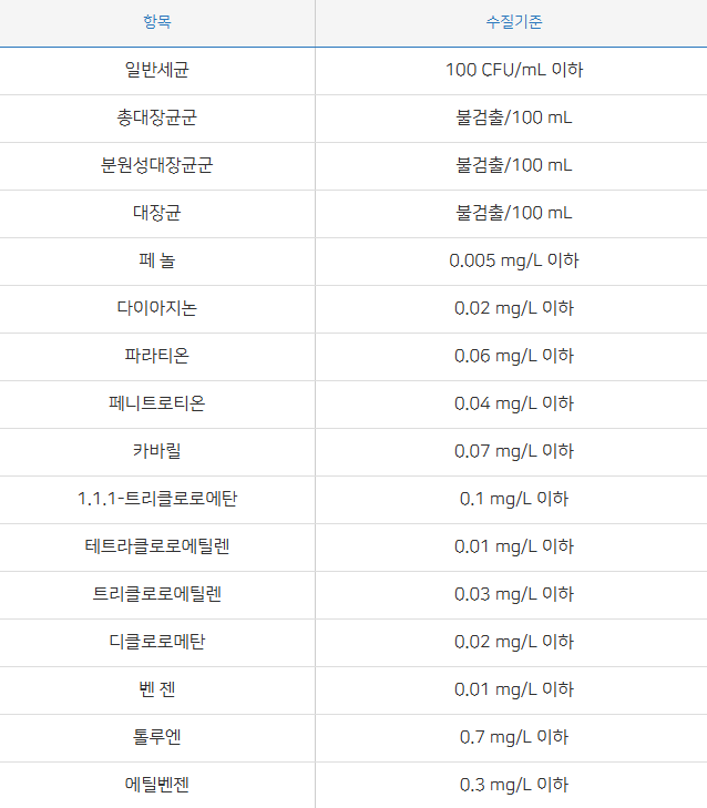 🔗 부산시 먹는물 수질기준 예시: *부산시 상수도 수질 기준 표