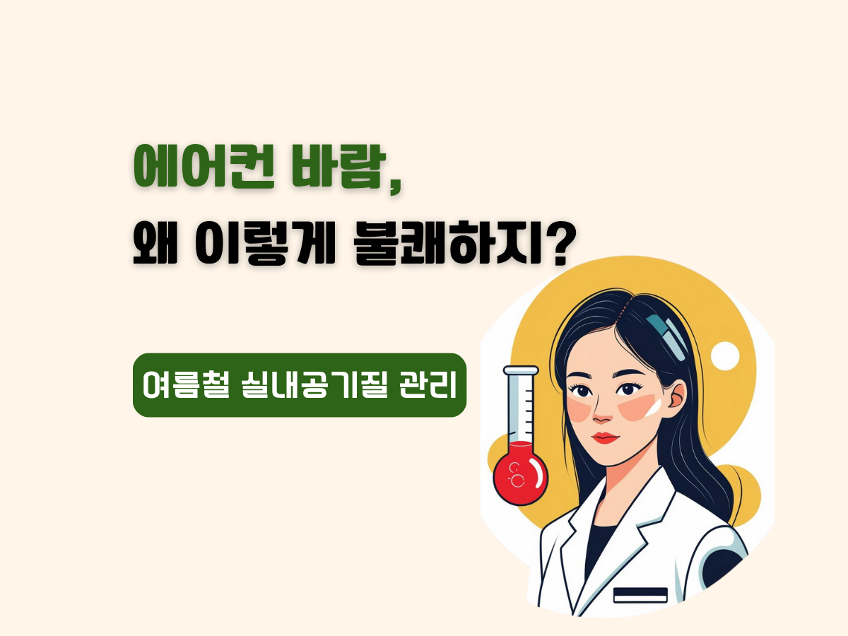 에어컨 바람 맞으면 머리 아픈 거... 저만 그런가요?요즘처럼 무더운 여름, 집에서도 회사에서도 에어컨 없이는 하루를 보내기 어렵죠.그런데 가끔은 이런 생각이 들기도 해요. “에어컨 켤 때마다 쿰쿰한 냄새가 나요.”“시원한데 뭔가 불쾌한 느낌이 들어요.”“에어컨 바람 맞고 있으면 머리가 띵하고 목이 칼칼해요.”이런 증상, 혹시 실내공기질 문제일 수도 있다는 사실... 알고 계셨나요? 에어컨 바람이 이상한 이유, 뭐 때문일까요? 🤔여름철 자주 발생하는 실내 불쾌감! 그 원인을 하나씩 짚어볼게요. 1. 곰팡이 & 세균 오염에어컨 내부 열교환기나 배수라인에 생긴 곰팡이와 세균이 원인일 수 있어요.바람을 타고 실내로 퍼지면서 특유의 쾨쾨한 냄새가 나죠. 2. 필터오염미세먼지, 머리카락, 애완동물 털 등으로..