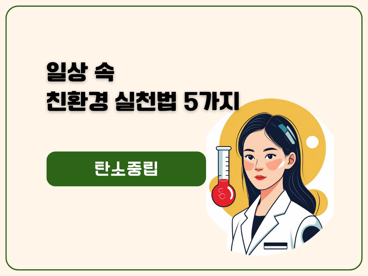 탄소중립… 너무 크고 어려운 이야기 같죠?사실 우리 일상에서 아주 작은 변화만으로도 지구는 훨씬 더 숨 쉬기 편해져요. 탄소중립, 어렵지 않아요!“탄소중립 하라는데… 내가 혼자 해서 달라지는 게 있을까?”이런 생각 많이 해보셨죠? 그런데 재미있는 사실이 있어요.탄소배출의 40% 이상이 개인의 소비 및 생활에서 나온다는 것!그래서 우리가 하루에 아주 조금만 바꾸어도 환경 변화는 꽤 빠르게 나타납니다.아래 5가지는 누구나 쉽게 실천할 수 있는 탄소중립 행동들이에요 🌿오늘부터 하나씩만 해봐요. 정말 달라져요! 1️⃣ 대기전력 줄이기🔌— 진짜 효과 커요TV, 공유기, 전자레인지 같은 가전은 꺼져 있어도 전기를 꽤 먹습니다.바로 이게 대기전력이에요. ✔ 멀티탭 OFF✔ 사용하지 않는 가전은 플러그 뽑기✔..